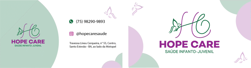 Cartão de visita (frente e verso): com layout limpo, cores suaves e ícones que remetem ao universo infanto-juvenil, além de elementos presentes na logo, o cartão transmite profissionalismo e empatia, refletindo a essência da clínica em cada detalhe.