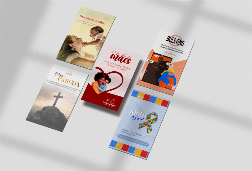 Desenvolvi uma série de criativos para feed e stories do Instagram, voltados à celebração de datas importantes no primeiro semestre de 2025. O projeto teve como foco reforçar a presença digital da clínica com uma comunicação sensível, acolhedora e alinhada ao perfil do público infantojuvenil.
